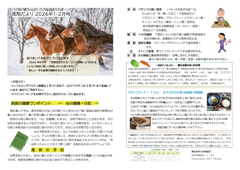 - 2026.1.151月18日(日)は休日当番医です。19日(月)は振替休診いたします